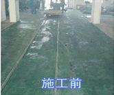 4.用堿洗地面,堿洗后用大量水洗沖地面,徹地洗去地面酸堿,在這過(guò)程中,用水磨機(jī)打磨地面,將腐蝕的水泥、油污去掉;